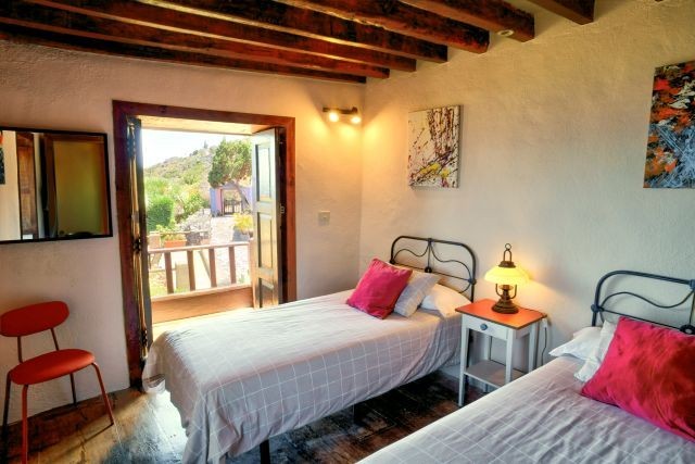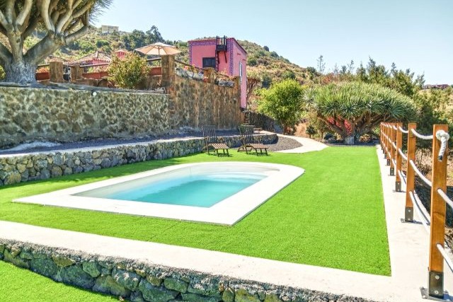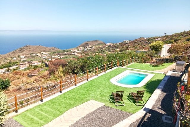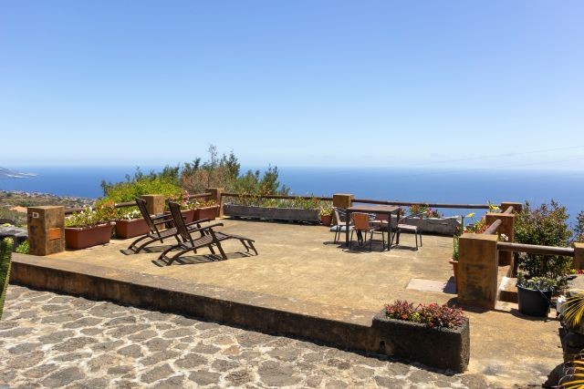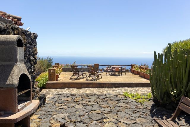 Draußen finden Sie mehrere Sitzplätze zwischen Blumen und Grün. Hier können Sie wunderbar entspannen, mit Blick auf das Meer und die weite Landschaft, die sich rund um das Tal erstreckt. Es gibt auch einen Grill zur gemeinsamen Nutzung – ideal für einen entspannten Abend mit einer köstlichen Mahlzeit und schöner Aussicht. Das Schwimmbad liegt ein paar Schritte weiter und wird ebenfalls mit dem Casa Sabina geteilt. Es ist ein gemütliches, kompaktes Becken, aber genau groß genug, um sich nach einem Spaziergang angenehm abzukühlen. Während Sie im Wasser treiben oder auf der Terrasse daneben sitzen, blicken Sie über den Ozean und die grünen Hügel. Es ist einer dieser typisch la Palma’schen Momente, die man mühelos in Erinnerung behält.