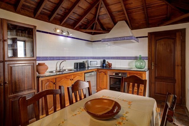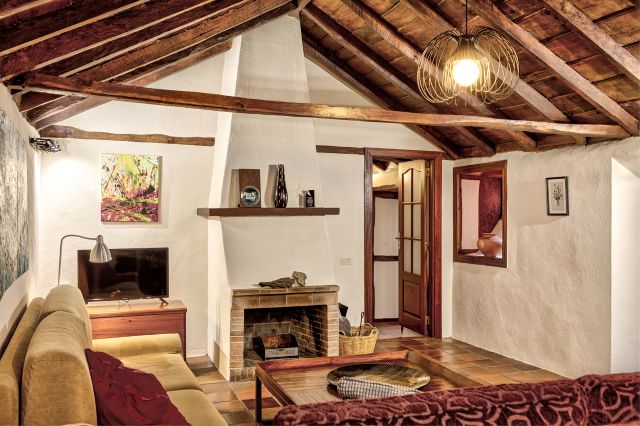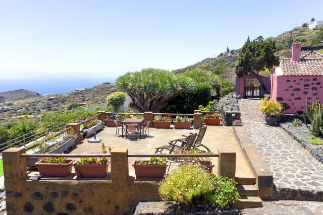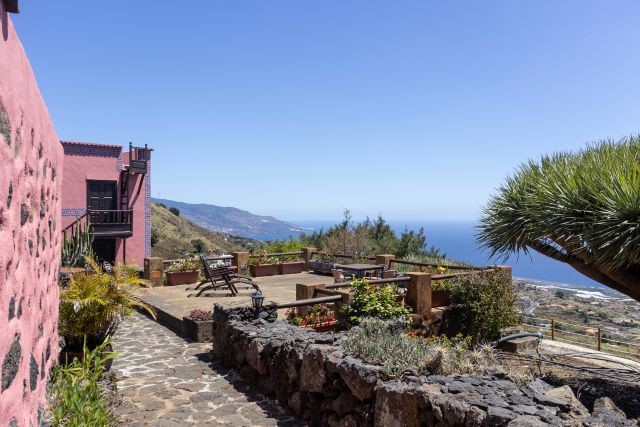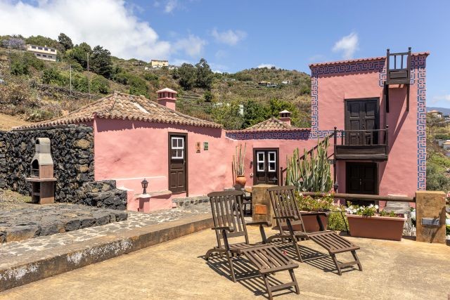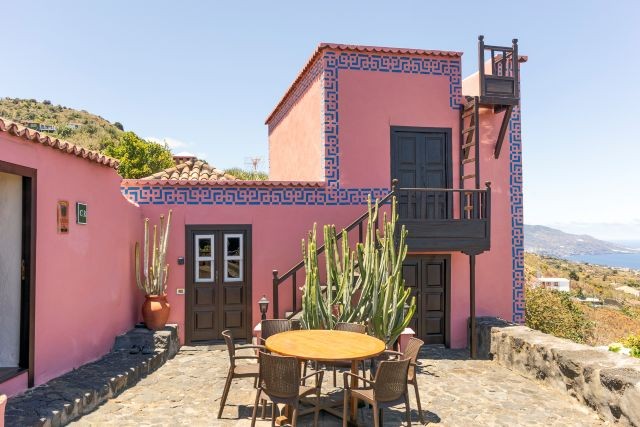 Casa Celeste ist ein großzügiges ländliches Ferienhaus von etwa 150 m², geeignet für bis zu sechs Personen. Es liegt im Ortsteil Monte, direkt oberhalb von Villa de Mazo, auf ungefähr vierhundert Metern Höhe. Die Fassade fällt sofort durch die traditionellen Farben und die indigoblauen Zierleisten auf. Innen fühlt sich alles warm, schlicht und gepflegt an, mit einer besonderen Mischung aus modernen und klassischen Möbeln.