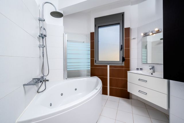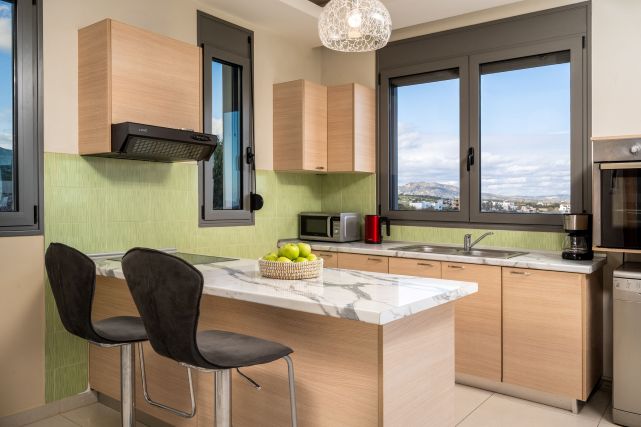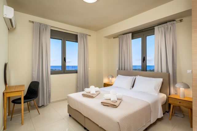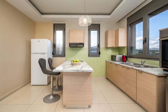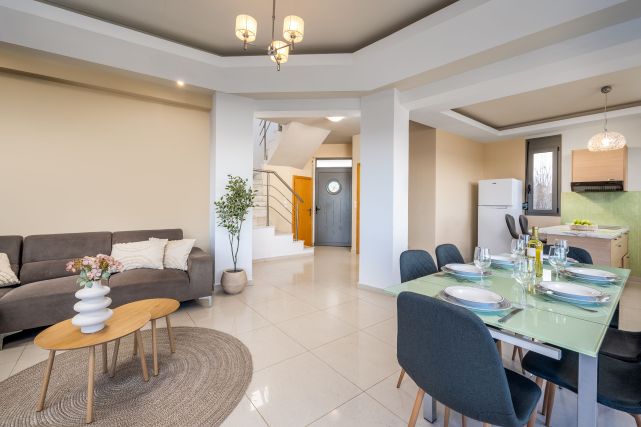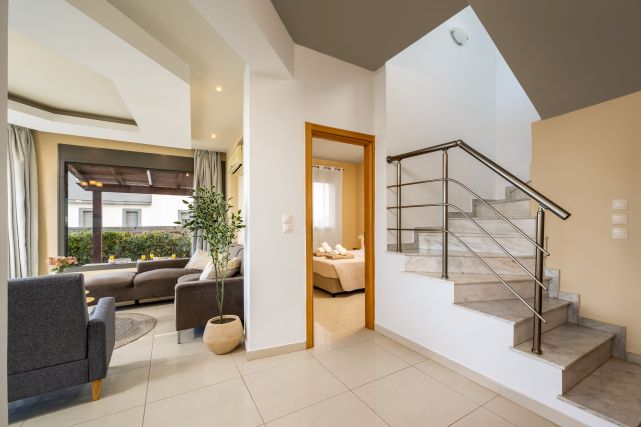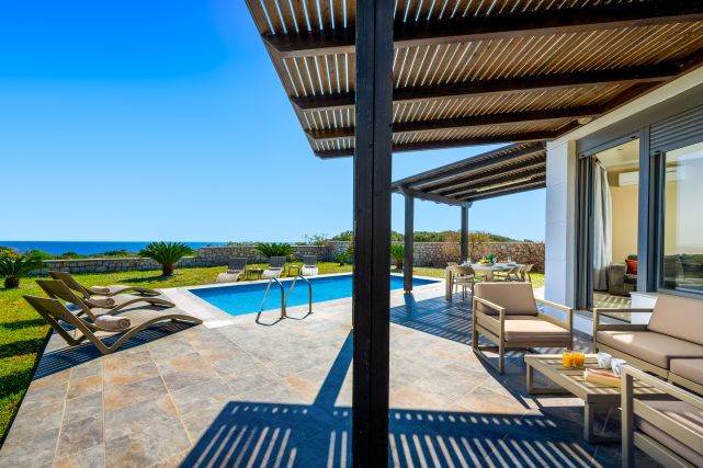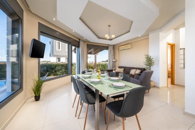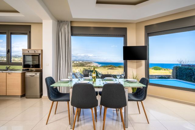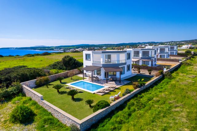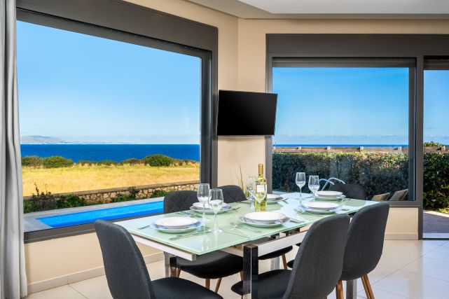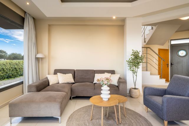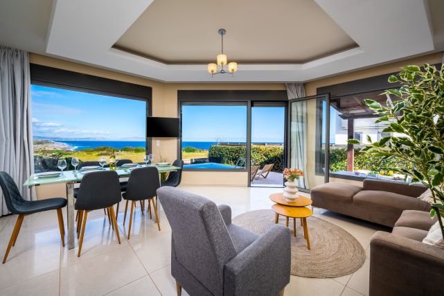 Die Villen von Aqua Natura sind geräumig und komfortabel eingerichtet und für maximal sieben Personen geeignet. Innen wirkt alles sofort hell und entspannt, mit einem gemütlichen Wohnzimmer. Auf dem Schlafsofa kann eine siebte Person bequem übernachten. Selbstverständlich sind WLAN und ein Fernseher vorhanden. Von der Villa aus genießen Sie zudem einen herrlichen freien Blick auf das Meer, was sofort für dieses ultimative Urlaubsgefühl sorgt.