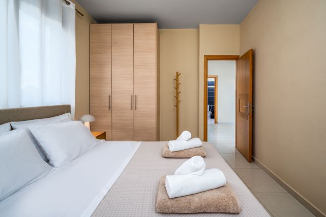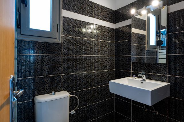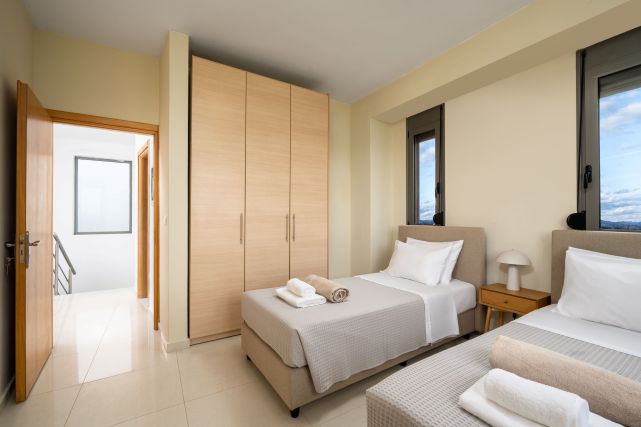 Die Villa verfügt über drei Schlafzimmer, die alle mit Klimaanlage und Verdunkelungsvorhängen ausgestattet sind, sodass Sie hier wunderbar zur Ruhe kommen. Im Erdgeschoss befindet sich ein Schlafzimmer mit einem Doppelbett sowie ein Badezimmer mit Dusche, Waschbecken, Toilette und Föhn. Im ersten Stock liegen die beiden anderen Schlafzimmer, von denen eines mit einem Doppelbett und das andere mit zwei Einzelbetten eingerichtet ist. Es ist ausreichend Stauraum vorhanden. Auch auf dieser Etage befindet sich ein zweites Badezimmer, komplett mit Badewanne, Waschbecken, Toilette und Föhn.