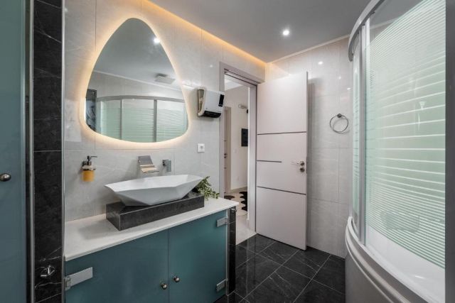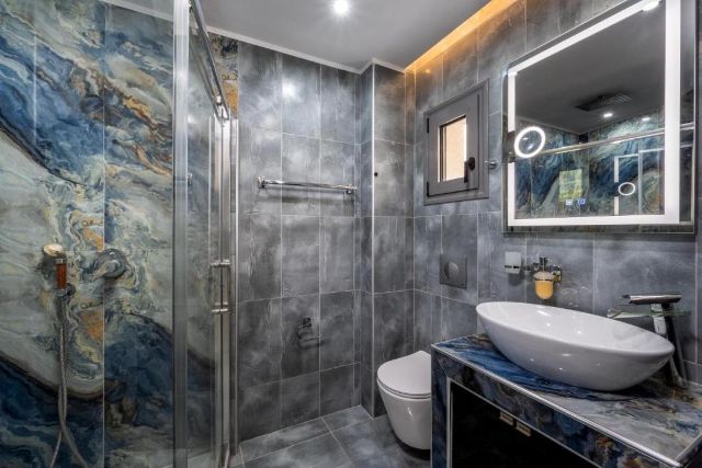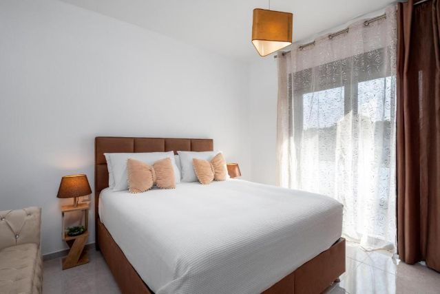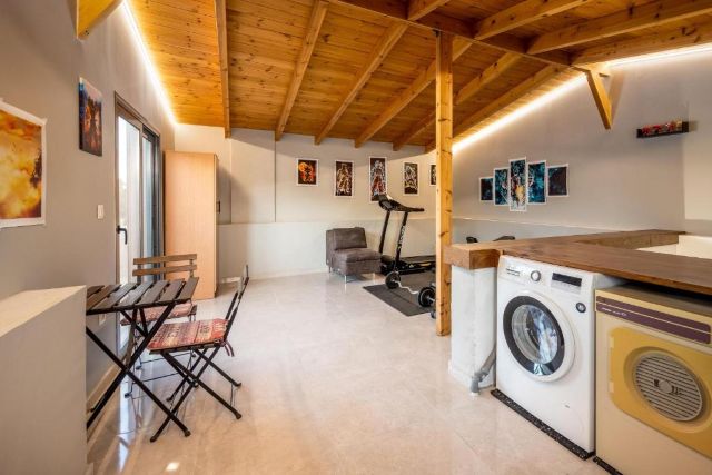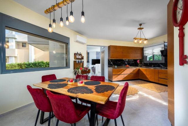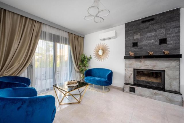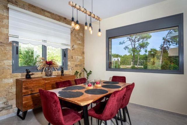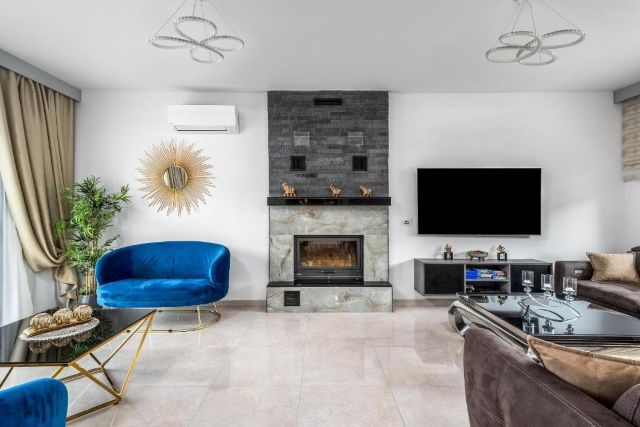 Villa Hideaway Rhodos ist modern und komfortabel eingerichtet und bietet reichlich Platz für sechs Personen. Das helle Wohnzimmer verfügt über eine großzügige Sitzecke, in der Sie sich gemeinsam entspannen können, mit WLAN, einem Kamin und einem Smart-TV in Reichweite. Große Fenster sorgen für eine offene und frische Atmosphäre, während die Klimaanlage an warmen Tagen für angenehme Abkühlung sorgt.