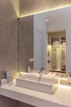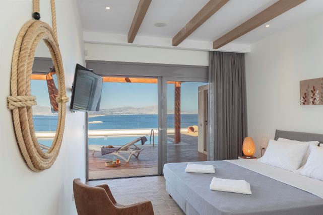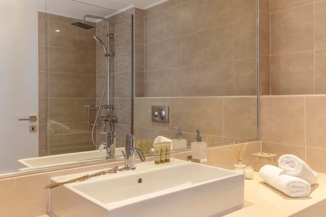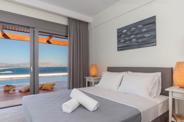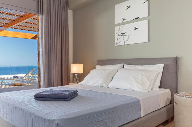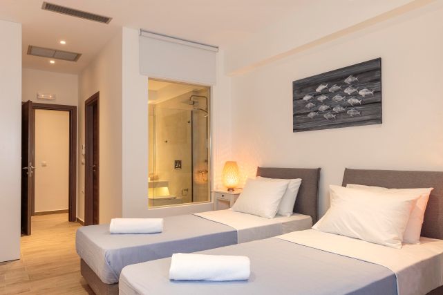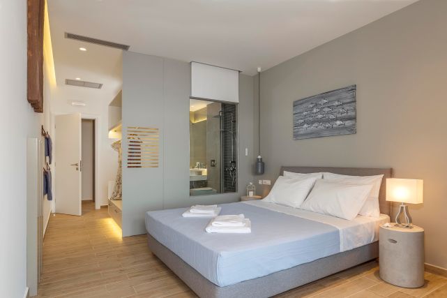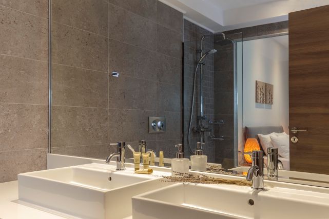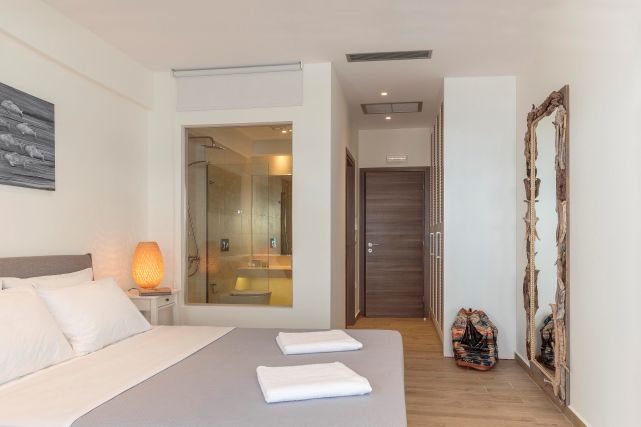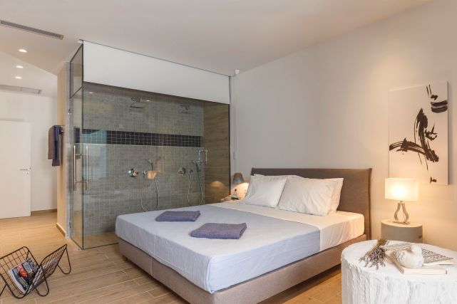 Die Villa verfügt über drei Schlafzimmer, jeweils mit einem Doppelbett. Jedes Zimmer hat zudem ein eigenes Ensuite-Badezimmer mit Dusche, Waschbecken und Toilette. Die Badezimmer sind modern gestaltet und verfügen über viel Glas. Die Zimmer sind gepflegt eingerichtet und bieten ausreichend Stauraum. Auch hier sorgt eine Klimaanlage für eine angenehme Temperatur, sodass Sie selbst in warmen Nächten gut schlafen.
