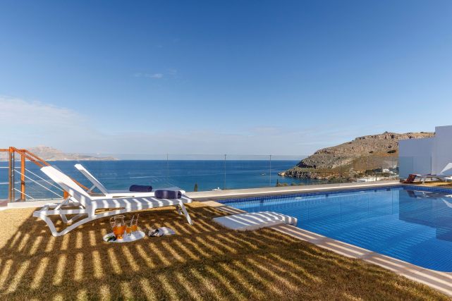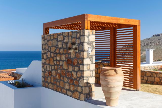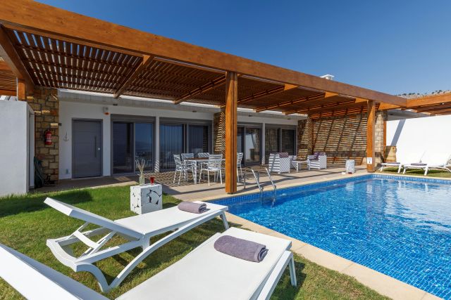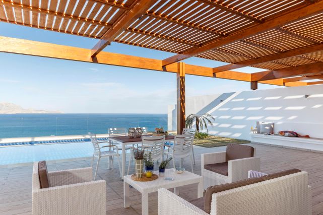 Im Außenbereich finden Sie eine großzügige Terrasse mit einem privaten Pool und Sonnenliegen. Unter der teilweise überdachten Terrasse befindet sich neben einer komfortablen Loungeecke auch ein Esstisch. Der Grill lädt zu langen, gemütlichen Abenden ein. Der Meerblick rundet das Gesamtbild ab, und nach einem erfrischenden Bad können Sie die Außendusche nutzen.
