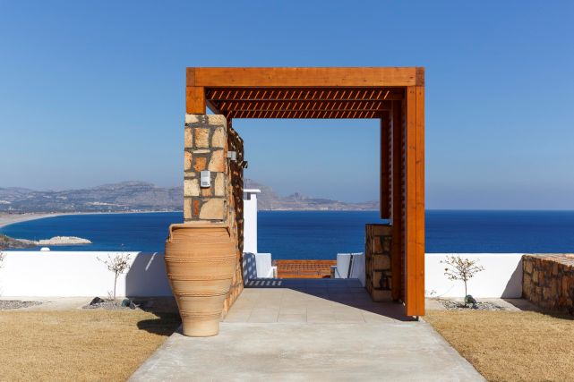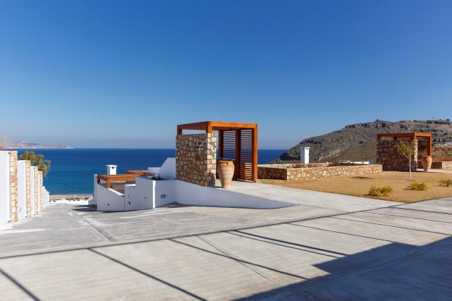 Sie parken das Auto bei der Villa, danach gehen Sie über eine Treppe nach unten zum Eingang. Die Villa selbst ist ebenerdig, was für einen angenehmen und übersichtlichen Aufenthalt sorgt.