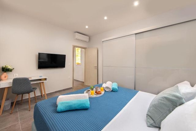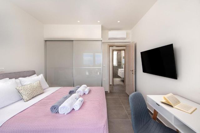Die Villa verfügt über fünf Schlafzimmer, alle mit Klimaanlage. Im Souterrain befinden sich zwei Schlafzimmer mit jeweils zwei Einzelbetten, die einfach zusammengeschoben werden können. Auf dieser Etage liegen auch zwei Badezimmer mit Dusche, davon eines en suite zu einem Schlafzimmer.