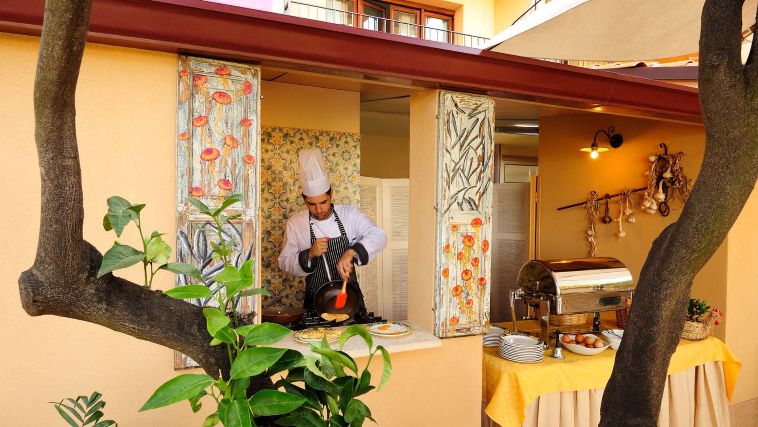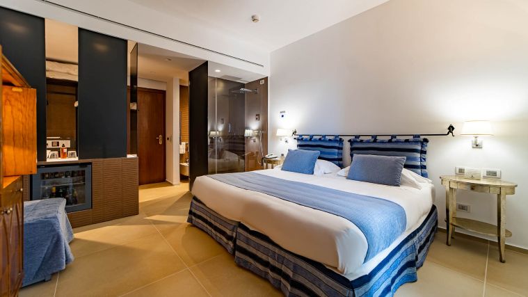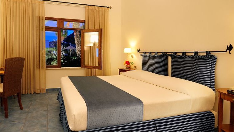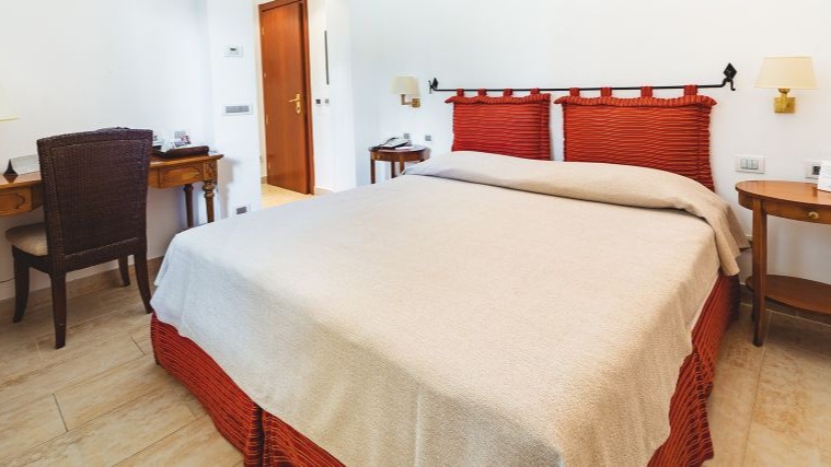 Ihr Classic-Doppelzimmer ist für maximal drei Erwachsene geeignet. Das Zimmer hat eine Fläche von etwa 20 bis 24 m² und ist in einem warmen, klassischen Stil mit Möbeln aus Kirschholz eingerichtet. Ein komfortabler Ort, um nach einem Tag voller Eindrücke auf Sizilien zur Ruhe zu kommen.