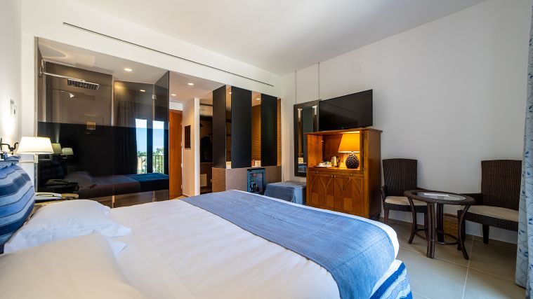 Das Zimmer verfügt über ein Queensize-Bett oder zwei Einzelbetten. Für eine dritte Person wird ein Schlafsofa genutzt. Die Betten sind mit feiner ägyptischer Baumwollbettwäsche bezogen und es besteht die Wahl zwischen Daunen- oder hypoallergenen Kissen.