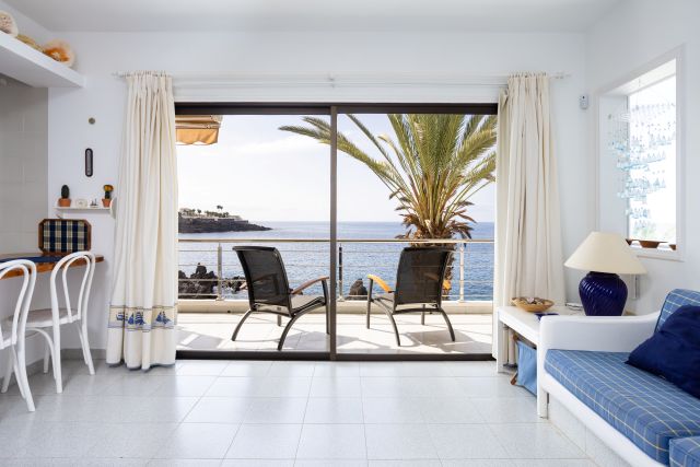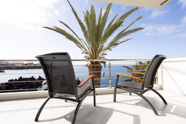 Der großzügige Balkon ist zweifellos das Highlight des Apartments. Von hier aus blicken Sie über den Atlantischen Ozean und die raue Küste, mit Palmen direkt vor dem Balkon. Es gibt einen Esstisch für gemütliche Mahlzeiten im Freien, während Sie dem Rauschen des Meeres lauschen.