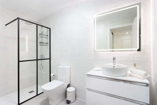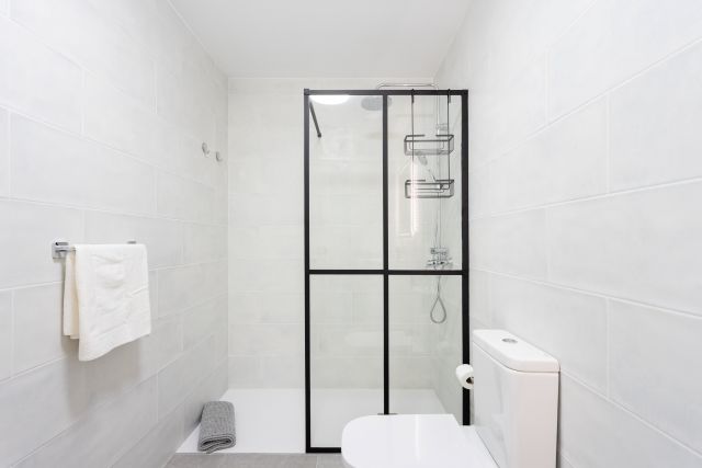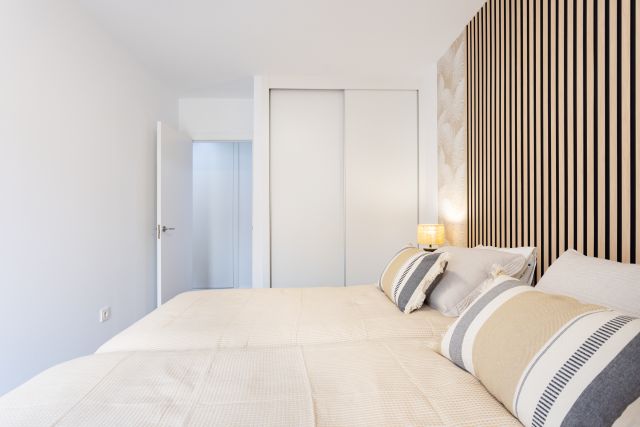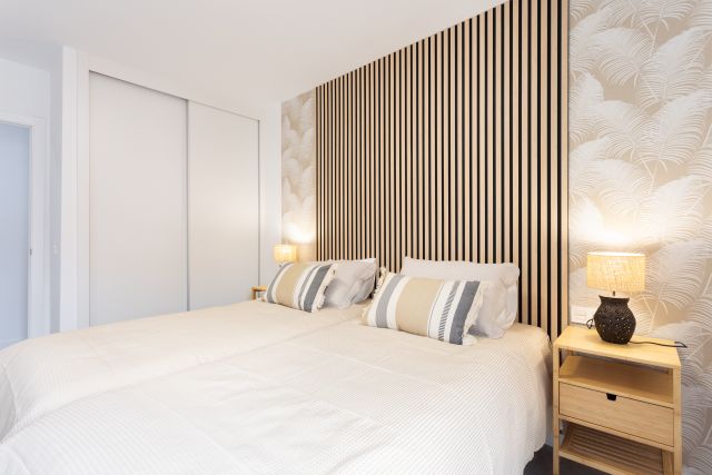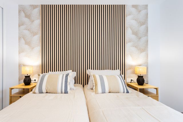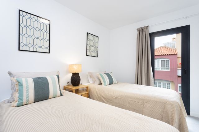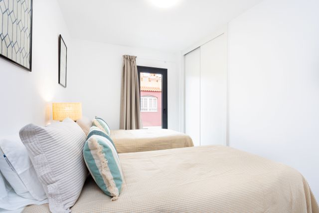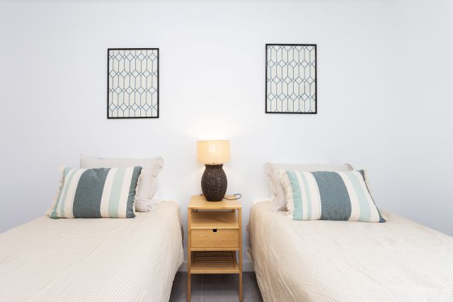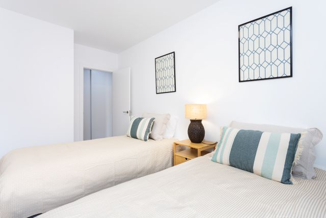 Das Apartment verfügt über zwei Schlafzimmer: im ersten stehen zwei Einzelbetten, die zusammengeschoben sind, und im zweiten Schlafzimmer zwei separate Einzelbetten. Das Badezimmer ist mit Dusche, Waschbecken, Toilette und Föhn ausgestattet.