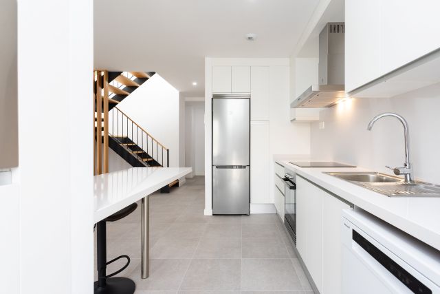 Dieses moderne 3-Zimmer-Apartment liegt im ersten Stock und ist für maximal vier Personen geeignet. Das helle Wohnzimmer ist gemütlich eingerichtet mit einem Sofa, Fernseher, WLAN und einem Esstisch. Angrenzend befindet sich die offene Küche, komplett ausgestattet mit Kühlschrank mit Gefrierfach, Backofen, Mikrowelle, Kochfeld, Geschirrspüler, Kaffeemaschine, Wasserkocher und Toaster. Außerdem stehen eine Waschmaschine sowie ein Bügelbrett mit Bügeleisen zur Verfügung.
